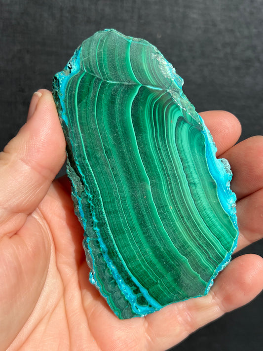 This is a beautiful coloured, heavy, smooth and warm piece. I normally just collect raw pieces but this is gorgeous and fits right in. It's big but I carry it on me most days!