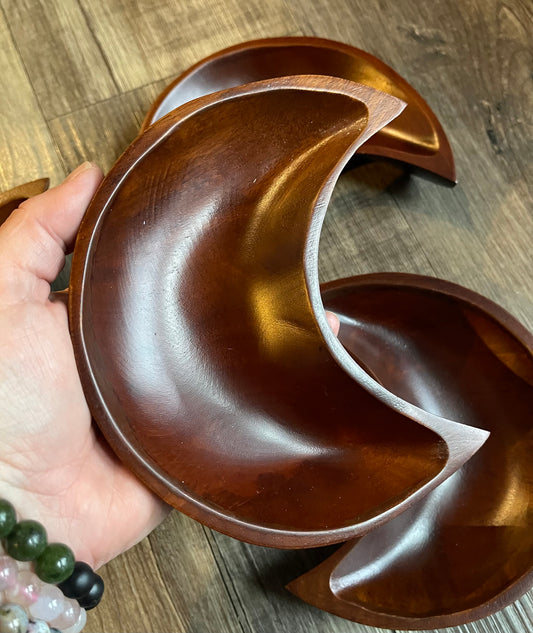 Crescent Moon Mango Wood Bowl, Dark Brown Marble