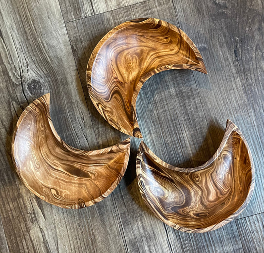 Crescent Moon Mango Wood Bowl, Light Brown Marble