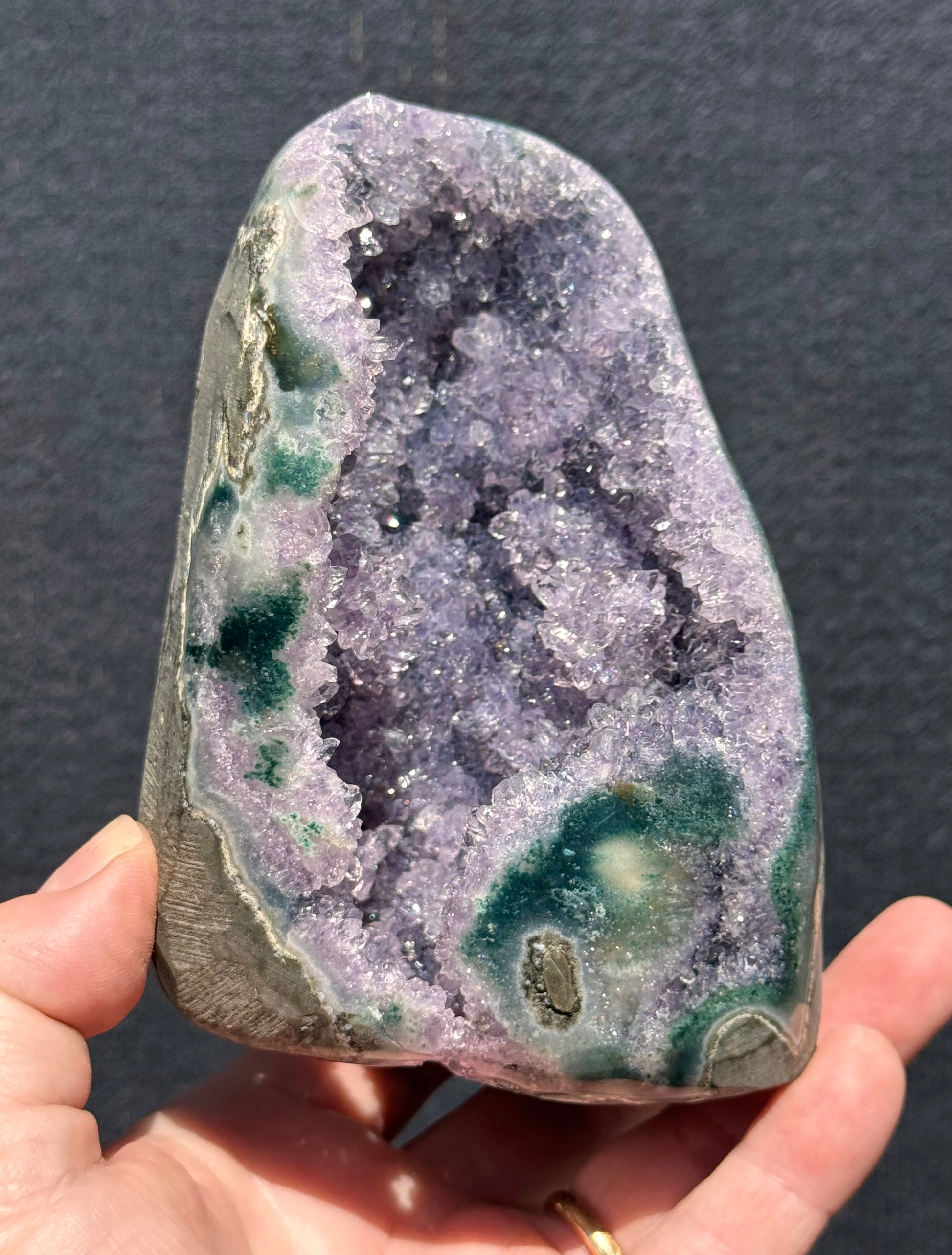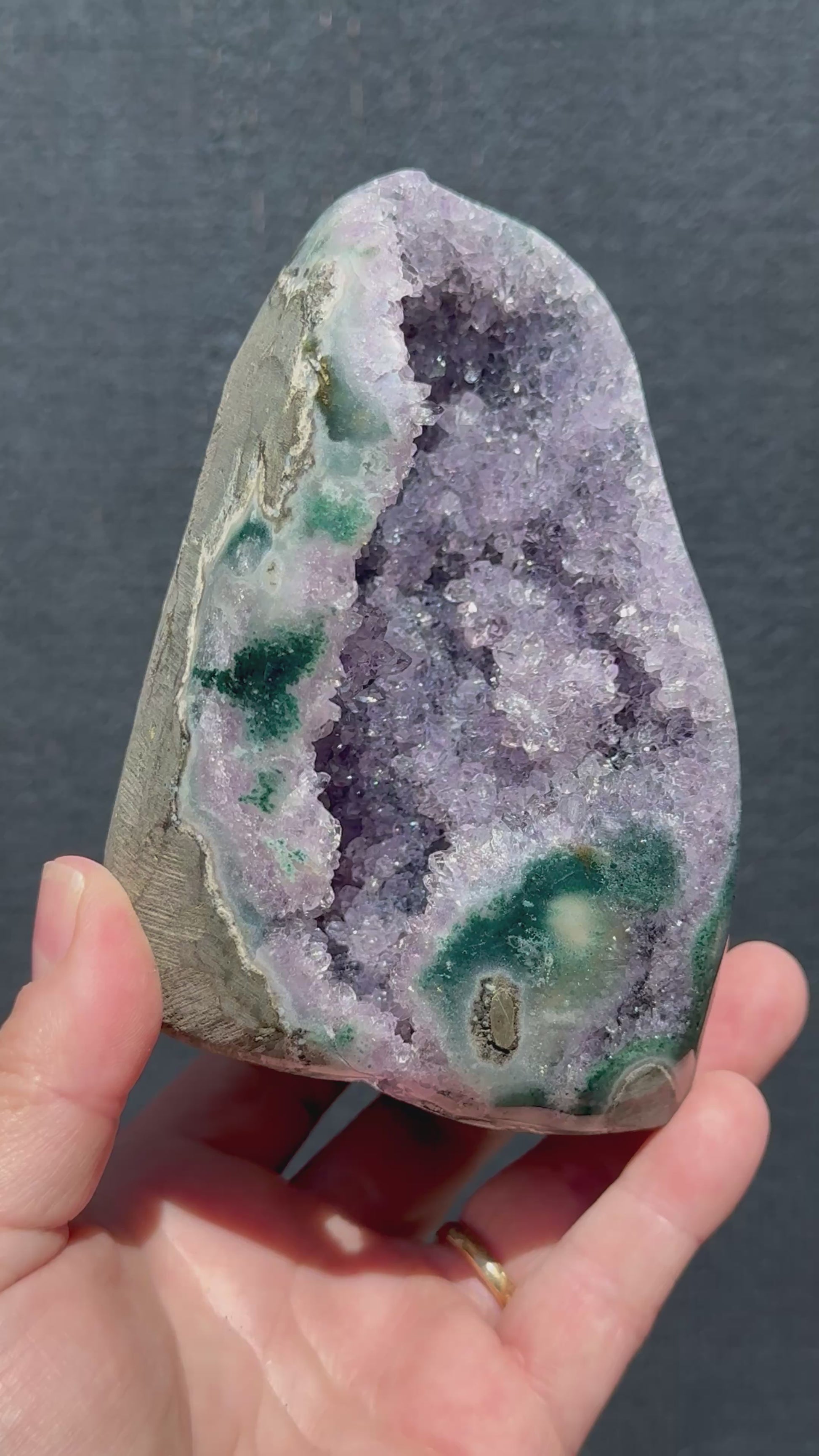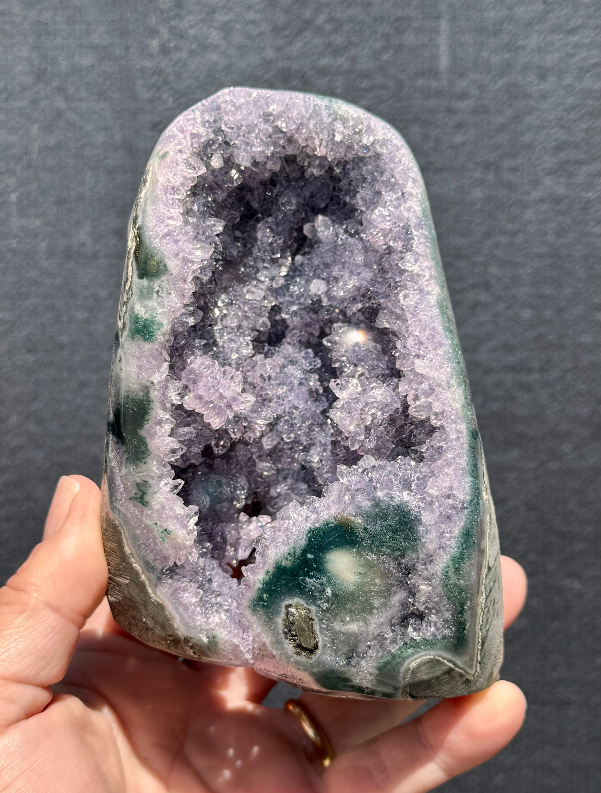 Lilac Amethyst wrap-around Geode with Green Agate Border
