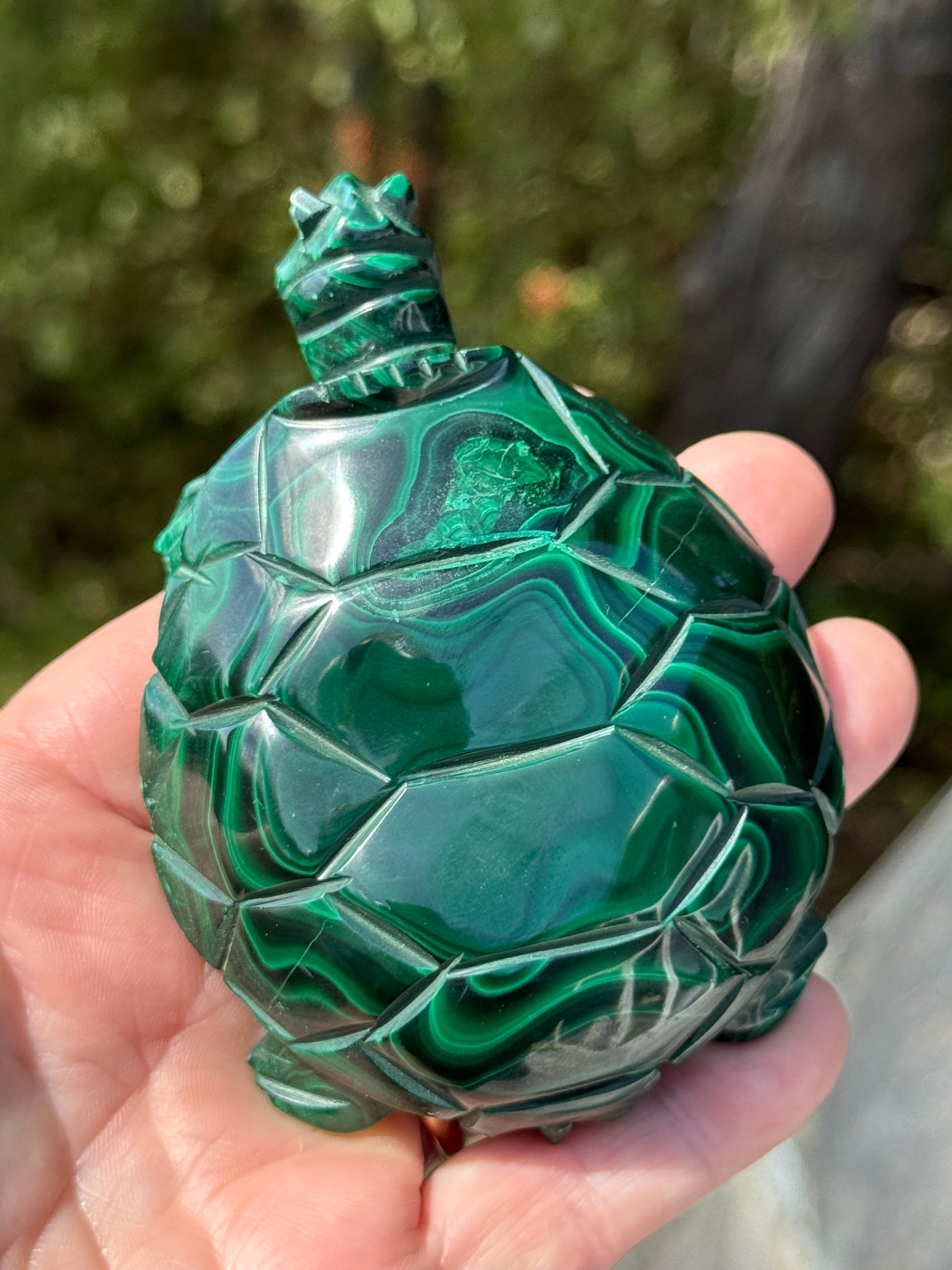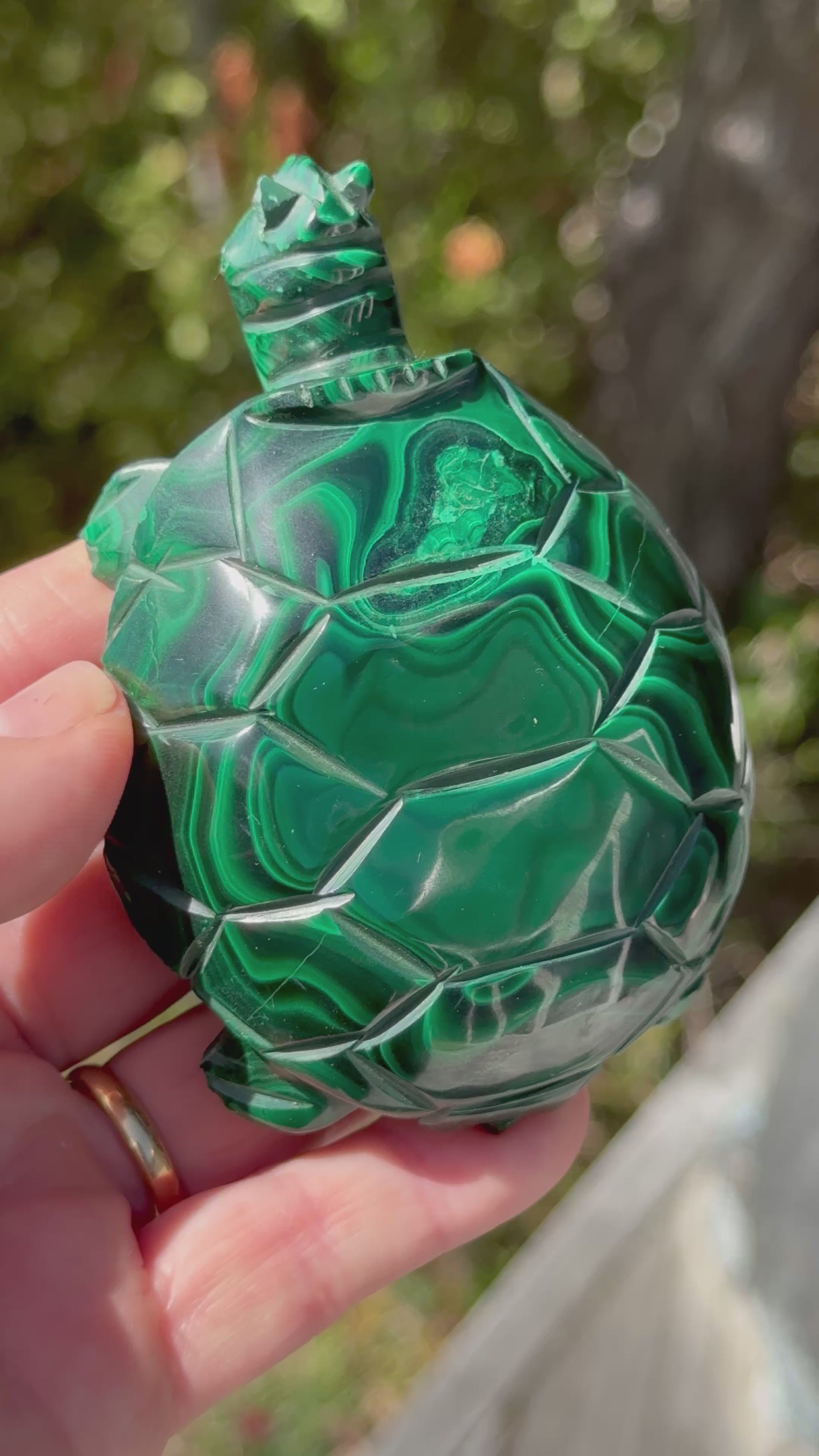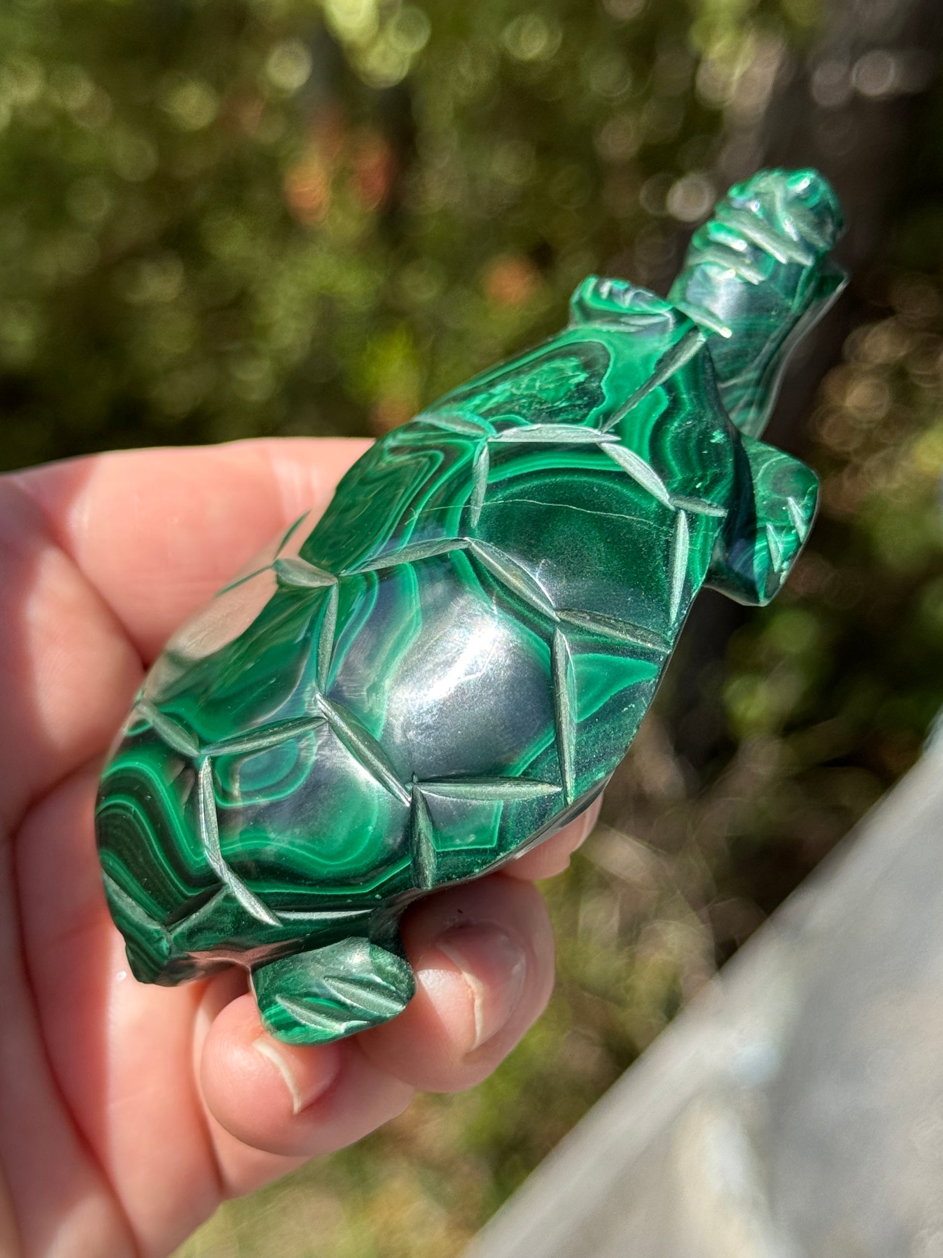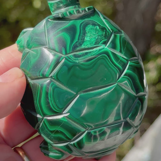 This beautifully carved Malachite turtle from South Africa showcases the striking banding and rich green tones that Malachite is so loved for. The flowing patterns and layers of colour highlight nature’s artistry, while the turtle symbolises protection, wisdom, and longevity. A truly eye-catching piece that brings both beauty and meaning to any crystal collection.