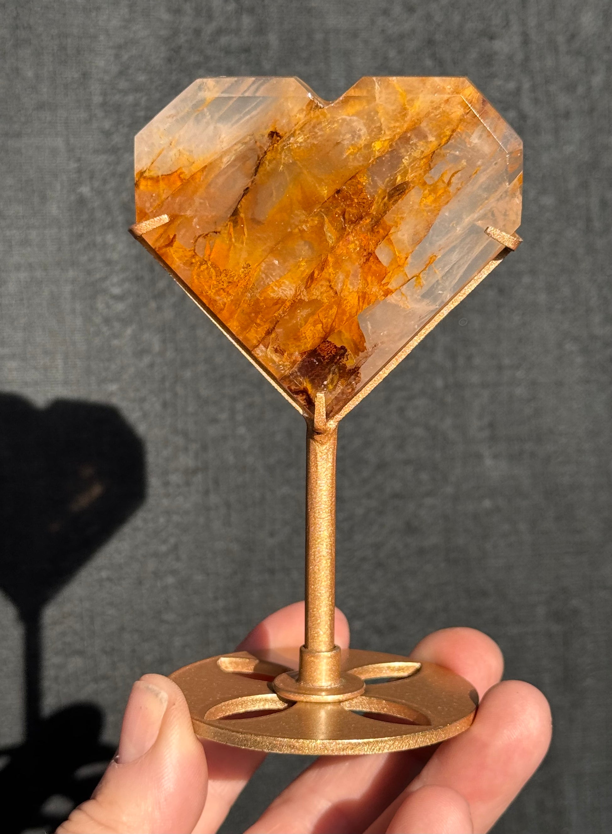 Gorgeous Golden Healer and Rose Girasol Quartz Faceted Heart on a stand