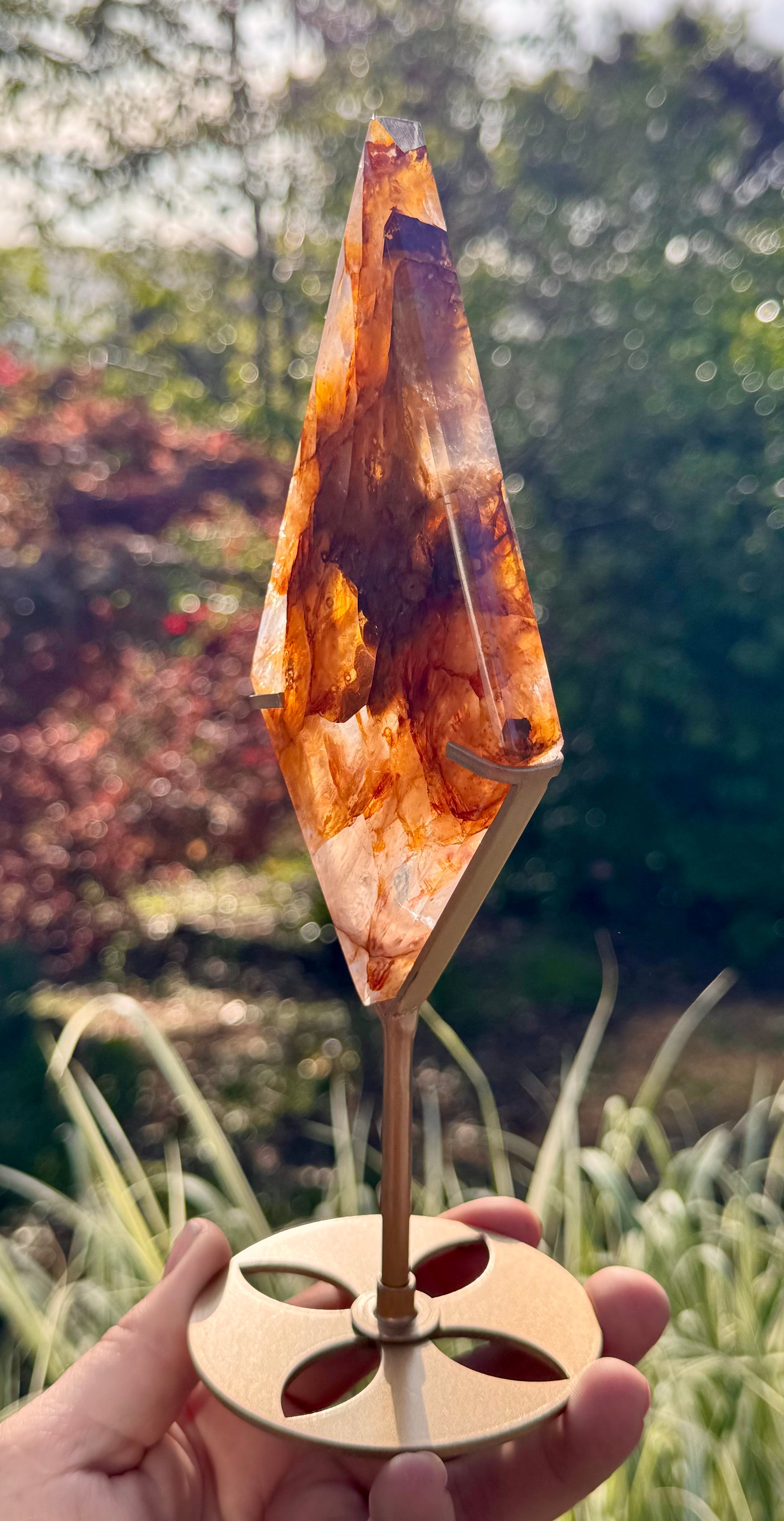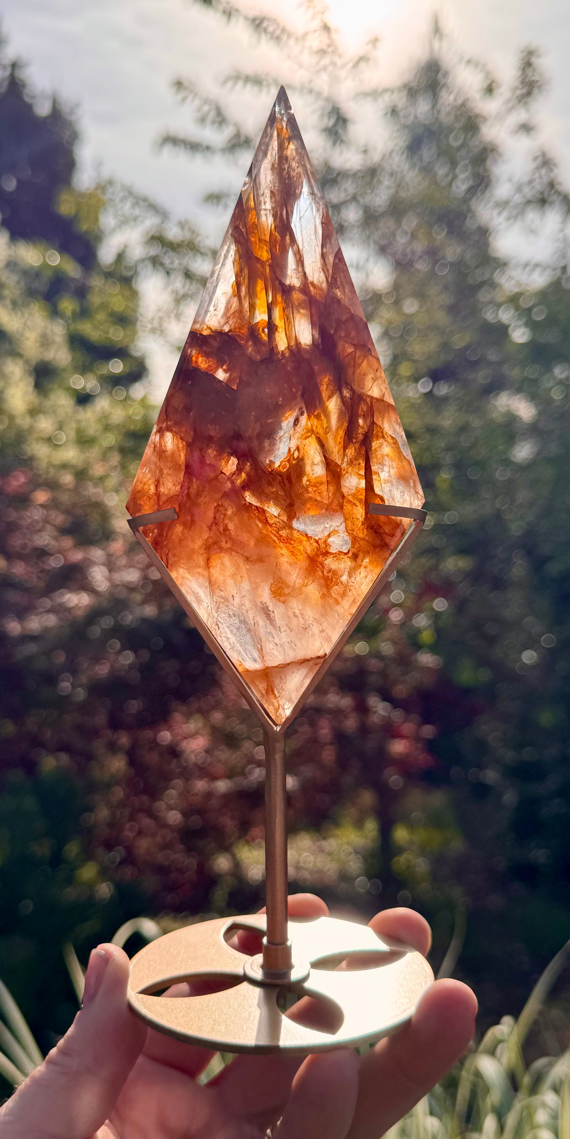 Stunning Golden Healer & Fire Quartz in Girasol Quartz Carved Diamond on Stand